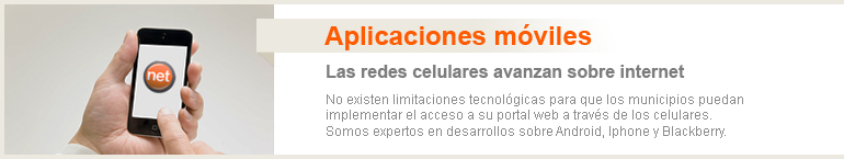 Los municipios pueden gozar de las ventajas de la web móvil contratando los servicios de net. Tenemos experiencia comprobable en soluciones sobre distintas plataformas como Android, Iphone y Blackberry.